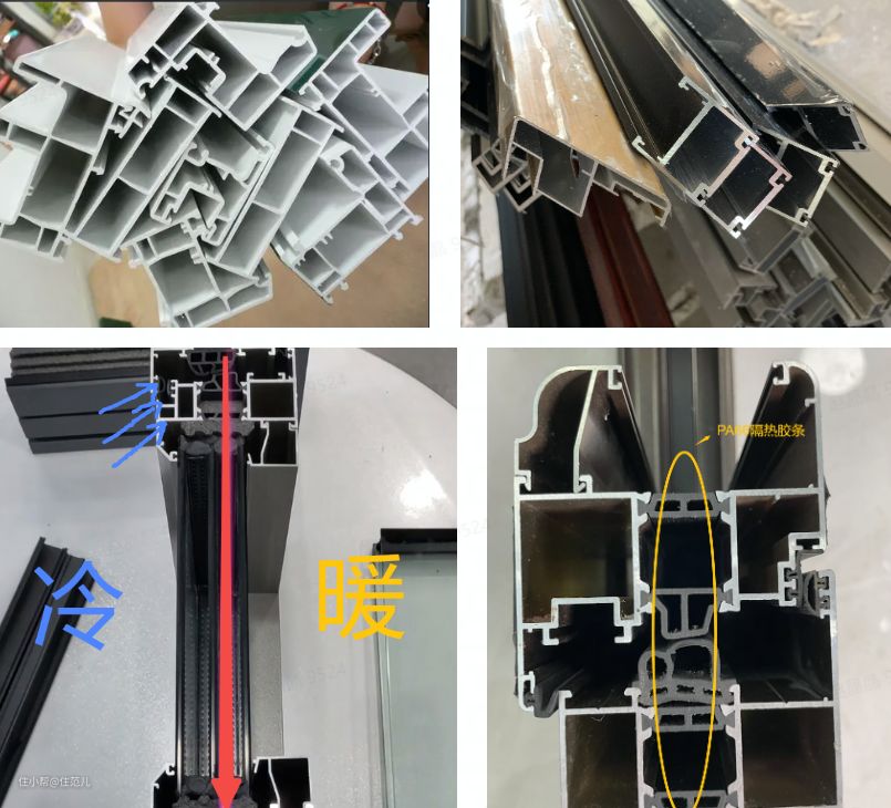图 住范儿自摄 左1 塑钢 左2 普通铝合金 下 断桥铝