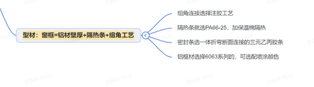 窗框=铝材壁厚+隔热条+组角工艺+密封胶条。