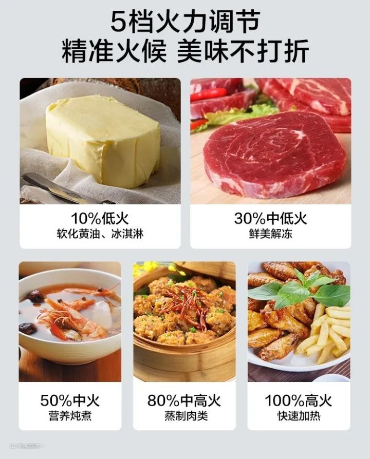 ②微电脑操作:定时时间准确,火力调节准确方便,功能会多一点