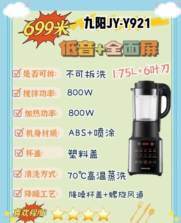 九阳,我看中的是JY -Y921和JY-Y921C,月销量8K+