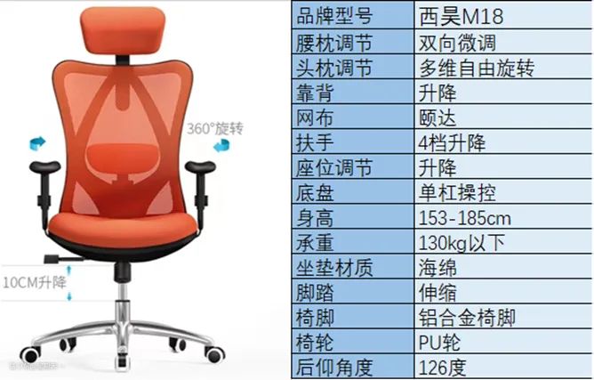 M18也是西昊卖的不错的一款工学椅。可以多维自由旋转升降的头枕分散颈椎压力,一体化的支撑架倚靠更放松 ,双向微调的腰枕更好的贴合腰部,三重设计,保护你的颈椎和腰椎,靠着更放松,缓解久坐的疲劳感。
