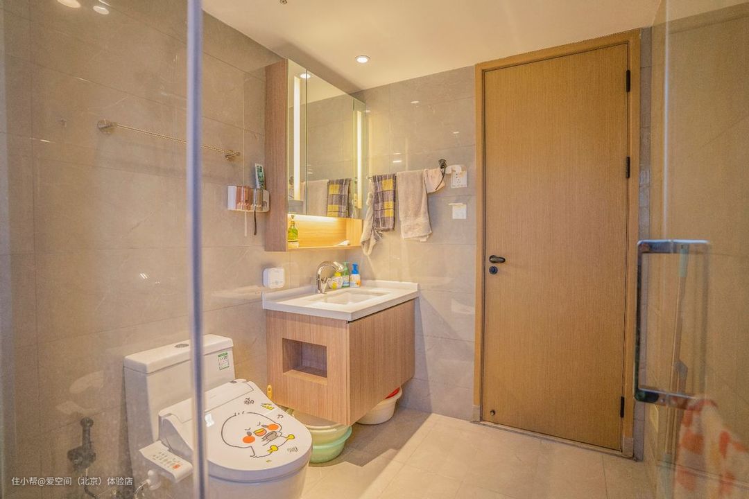 卫生间做了干湿两分离,真是个很正确的决定,早上两个人上厕所和洗刷都不会互相打扰啦,不怕洗澡水汽侵入让浴室柜变形,平时手脏了洗个手,不用去碰门把手就可以洗手。
