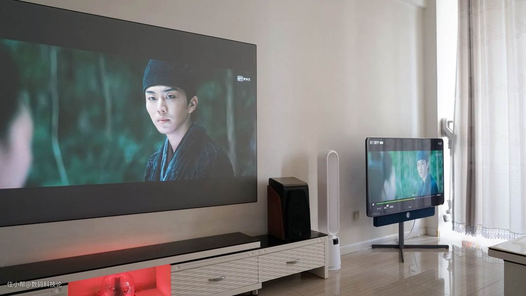 另外,有人一提到投影仪就感觉效果不如电视效果,一想到漫反射画面就联想到见光死。实际上搭配光学屏使用投影仪的话,这个问题也能解决。比如同样是正午看电视,电视再亮但电视屏幕有镜面反光,不拉窗帘的效果,其实也不咋地。但使用投影仪+光学屏,画面尽管略显暗一点,但完全没有镜面反光之类的鬼影,反而显得很自然纯净,就像是看壁画一样。