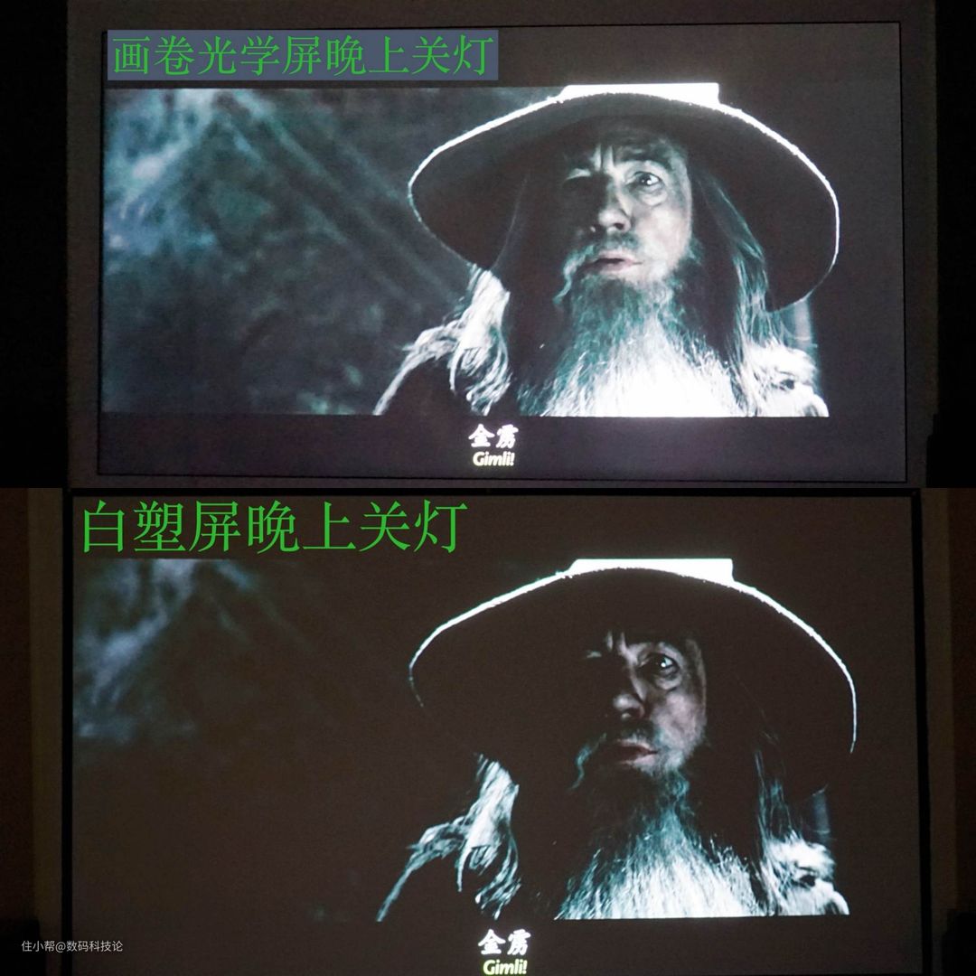 下图是晚上全黑环境画卷光学屏与白塑屏的对比,可以看到光学屏对整体亮度的提升,细节看得更清晰。