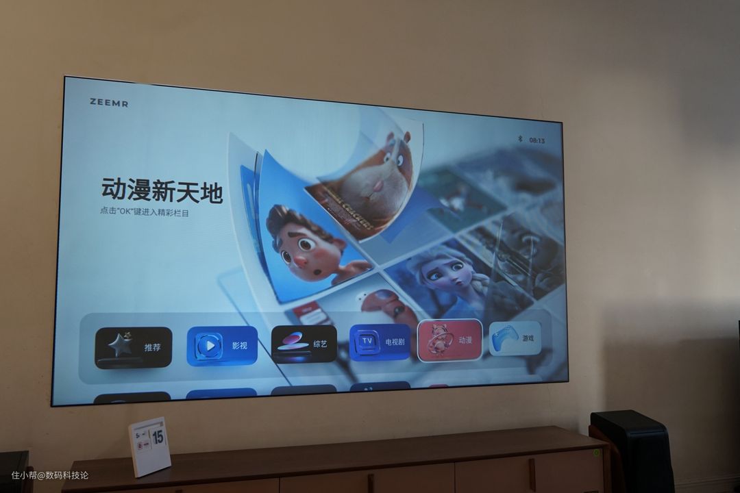 而在晚上使用的时候,哪怕是环境装饰灯开启,投影仪搭载光学屏使用也非常nice,不需要为了观影营造全黑环境的暗室效果,也能沉浸在高清画质中。