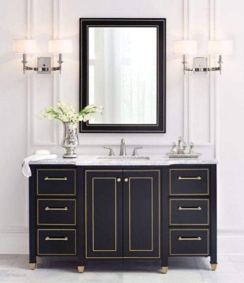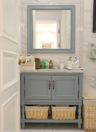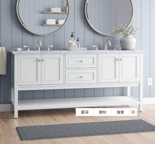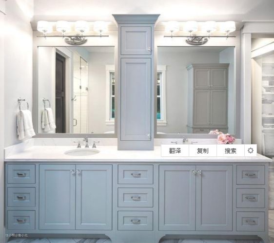 大面积可考虑的美式,做了双面镜,可以说非常优雅精致了。这款柜子材质可选模压与实木。但模压板的白色,应该做出来比这款偏白,没有做旧的感觉。想与图中一样可选实木做白色漆,基本没差。