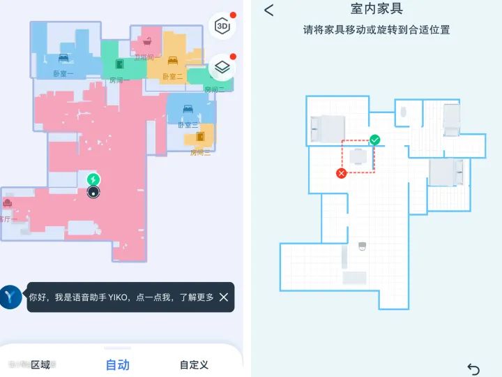 拥有RGBD传感器,以及全新的AIVI 3D技术,能通过摄像头识别出家中家具的位置与类型,在手机APP上可以创建全屋的3D地图,按照家中摆放位置添加床、沙发等家具,编辑好3D地图后,从手机上就能看清楚家里家具家电的位置情况。