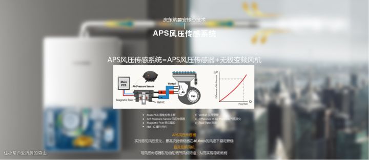 这是一项抗风压技术,壁挂炉采用了风机抽吸的负压方式,如果外部风压过大,普通壁挂炉的负压产生受阻,设备下方的进氧量无法满足燃烧要求,会导致燃烧不充分、甚至引起熄火、造成一氧化碳中毒等危害,APS通过检测外部风压,动态调节风机功率,保证燃烧的稳定性。