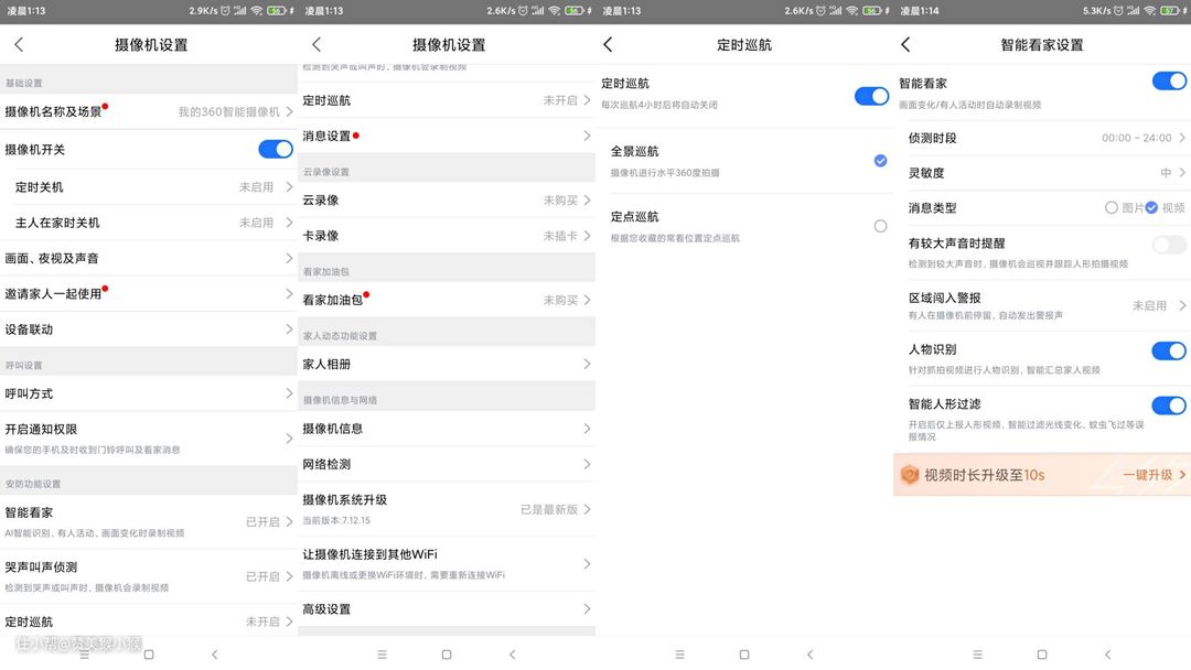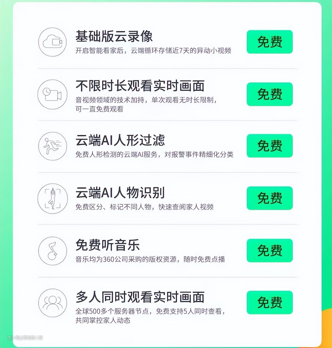 小米这款家用摄像头的功能则相对单一,不过画面质量和智能算法的体验上基本合格,应该说没有明显短板。而360这款家用摄像头云台7P在AI算法上不仅十分丰富,而且使用体验也不错,一些日常常用的功能都以傻瓜化的模型进行控制,上手十分容易,是一款非常合格的家用摄像头。