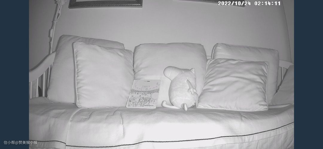 最后来看看360家用摄像头云台7P的夜间表现效果如何。画面中能够看到红外补光灯的亮度非常足,整个画面都被照亮了,甚至在微光镜头的捕捉下,一些暗部细节也被照射的清清楚楚。