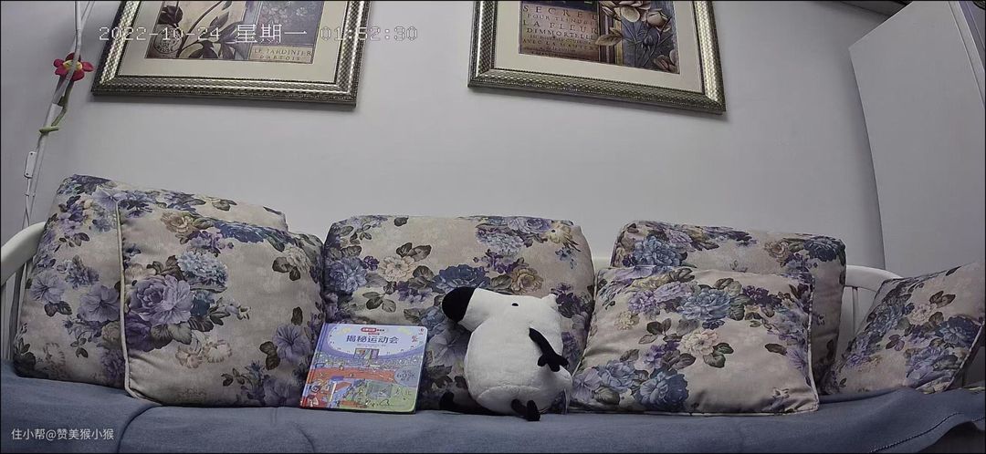 这里在沙发上摆放了图书绘本和玩偶作为参照物,来看看不同摄像头的表现如何。