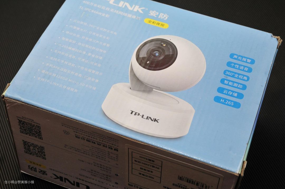 TPLINK全彩云台网络摄像头外包装采用了天蓝色的配色风格