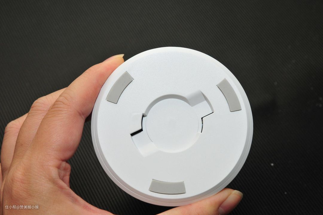 底部的二维码可以利用米家APP扫码添加设备,外围一圈均为橡胶材质,可以提高云台与平面的摩擦力,防止打滑。