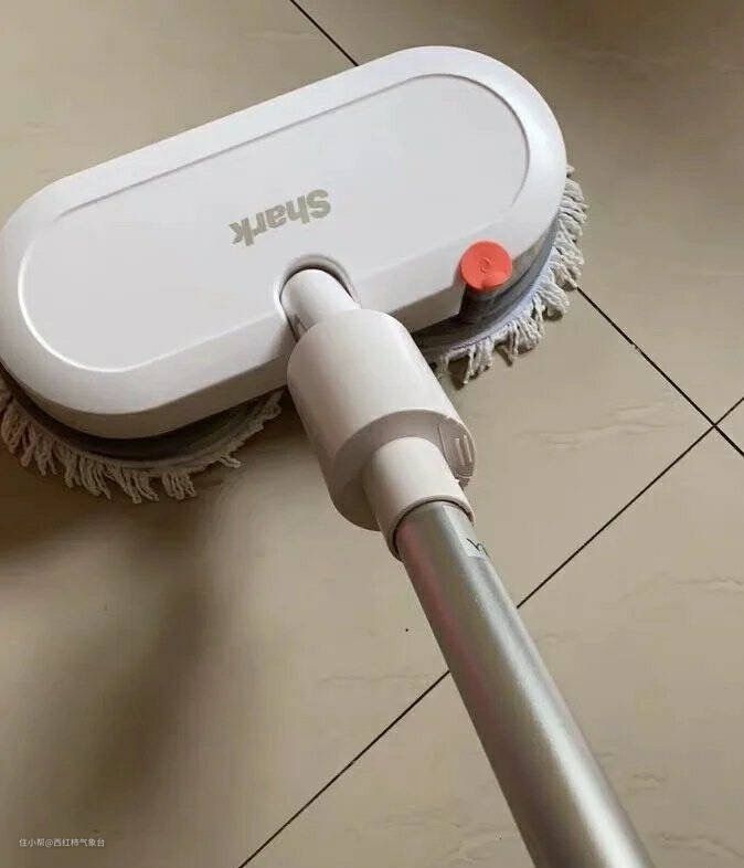 2020年新品,鲨客这款电动拖把的拖把是特殊材质,白色那面吸水力强,灰色那面抓污能力好,1+1>2的拖布敲nice,而且两档位转速,地板比较脏的地方可以喷水,开高速那档清洁,轻轻松松就能把地板拖干净了。