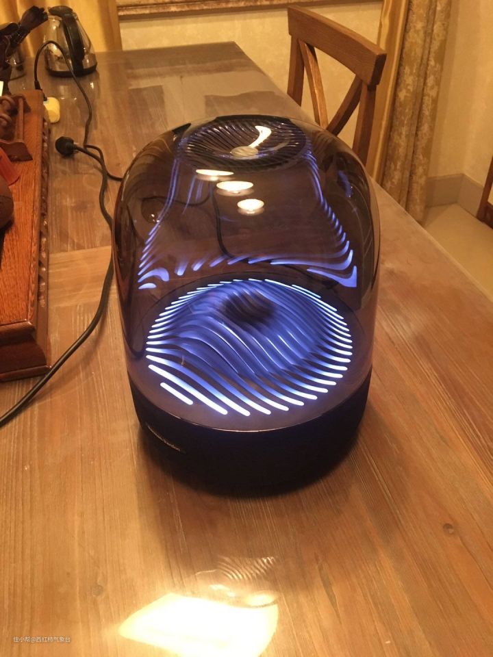 它的上半身是由有机玻璃打造的透明体,整体做工不错,琉璃罩表层做了硬膜处理,坚固耐磨,表面不容易刮花,同时也是为了更好展示灯光系统,这个透明体的设计也非常的别致,中间有个喇叭状的导波圆孔,音箱底部橡胶圈构成三点支撑,用于固定箱体,起到了避震效果。AURA STUDIO 2融入了哈曼卡顿研发的立体声扩宽DSP技术,无论在声学还是美学上都是音箱中的佼佼者。