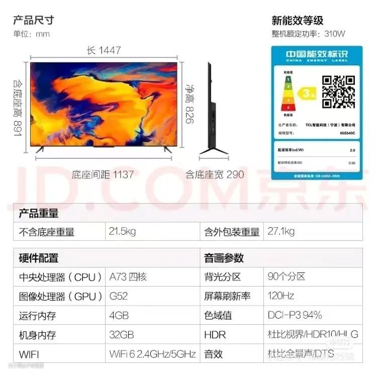 当然这个数值也不是越高越好,太高了会伤眼睛。通常来说,中低端电视一般峰值亮度在400到600尼特,中高端则是600到800尼特,大于1000尼特就属于高端了,大家在购买时可以做个参考。