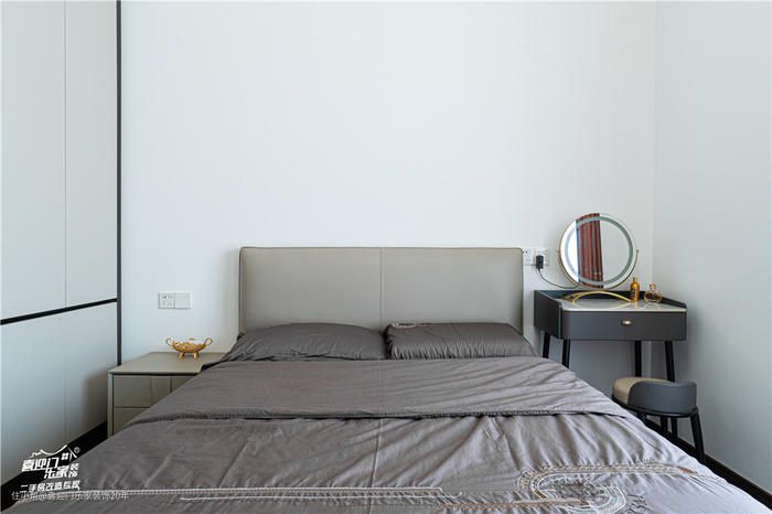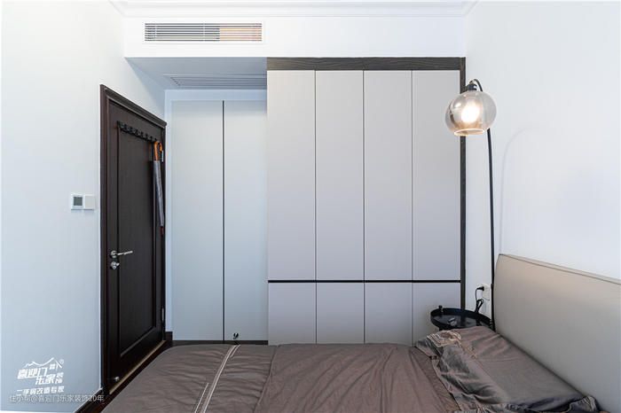 给空间做减负,给睡眠空间营造轻松舒适的氛围,保持了卧室空间的基础三件套:床、衣柜、床头柜,到顶的大衣柜满足日常收纳需求。