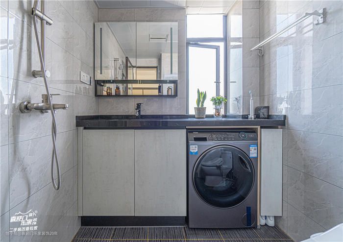 1米7的大浴室柜内嵌洗烘一体机,做镜柜设计,隐藏式收纳让空间保持干净整洁。