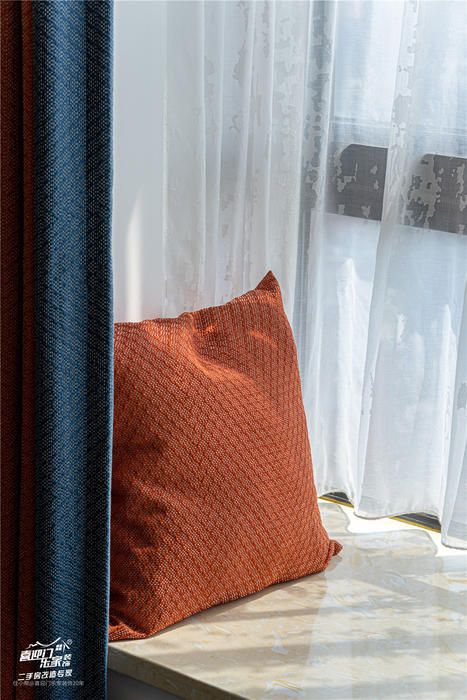客厅把原阳台打通纳入客厅,做封窗处理,增加客厅进深空间。清晨的阳光穿过窗与窗纱洒在地面上,洒在沙发上,明亮而温暖。