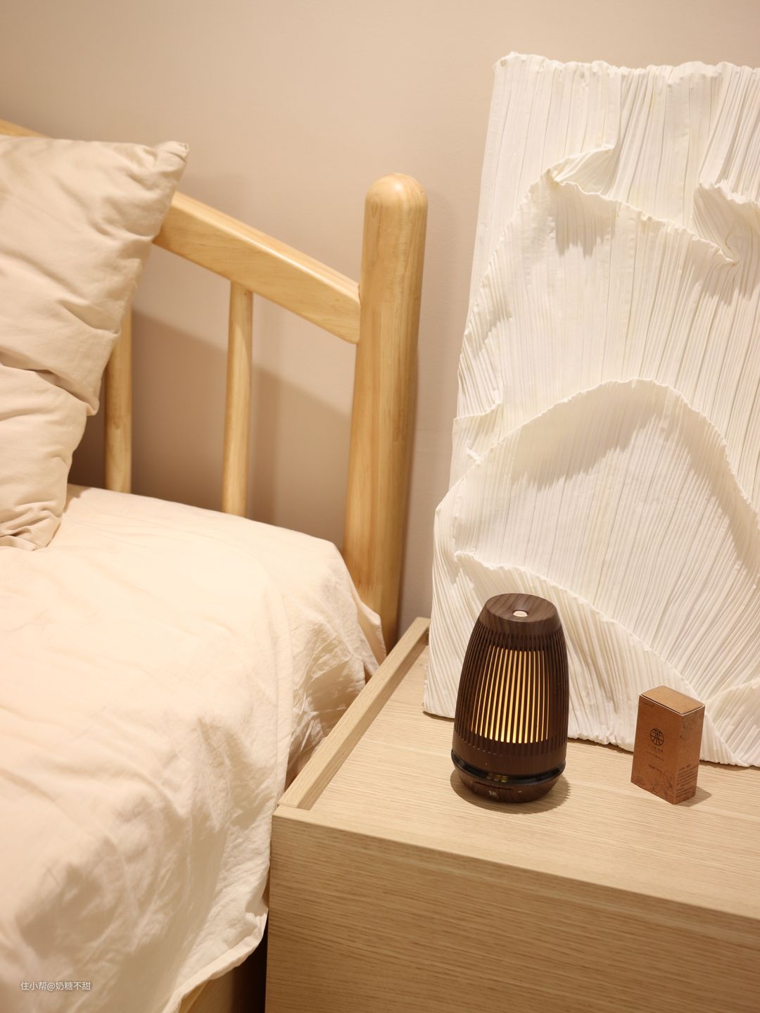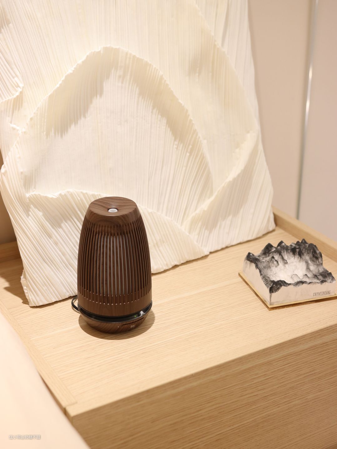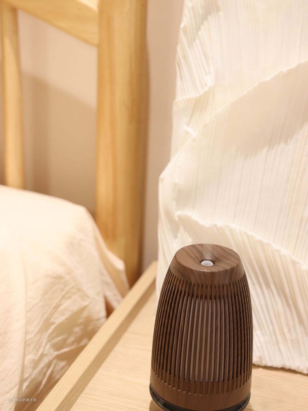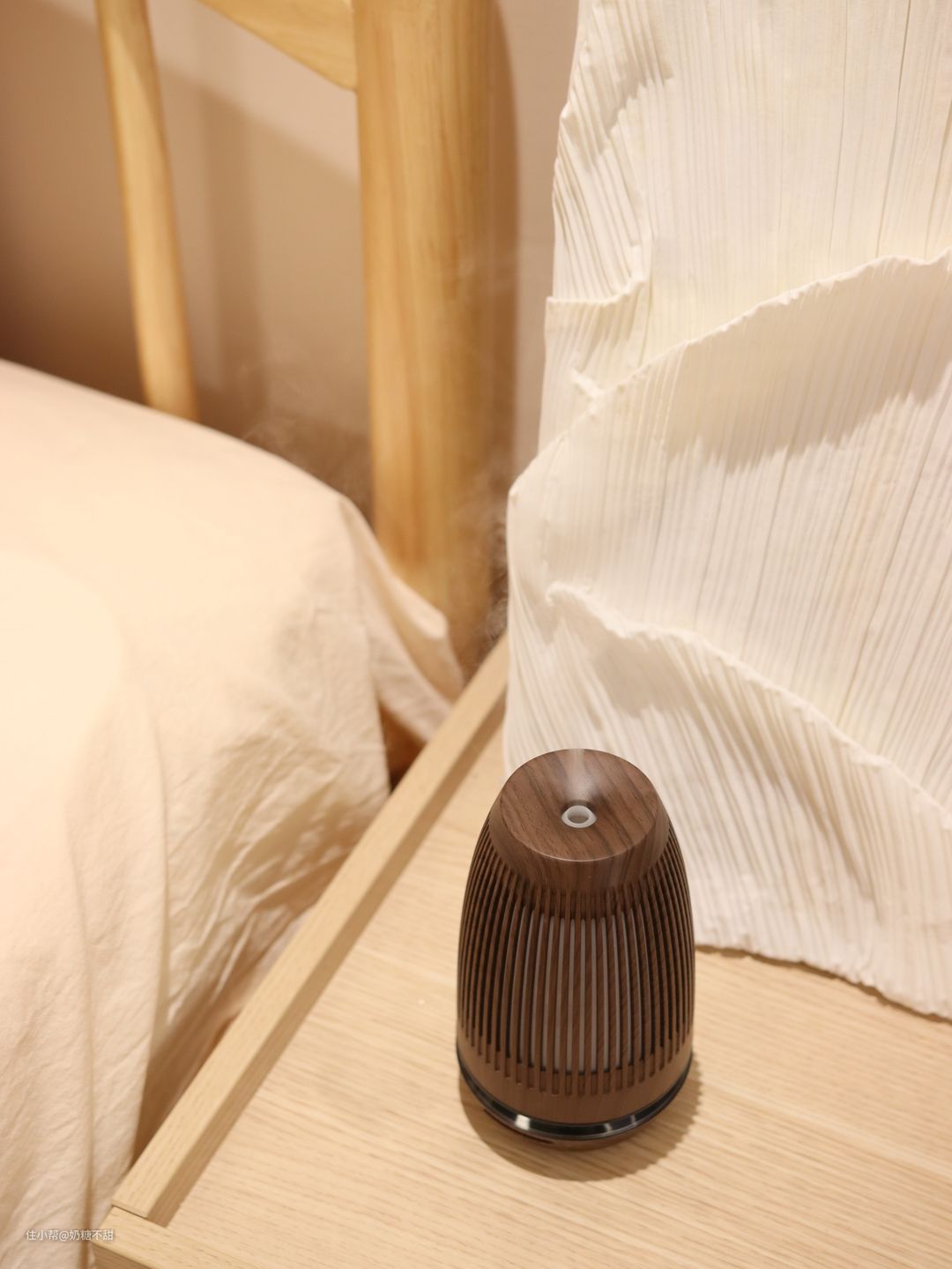 起来之后,白天可以点上甜橙香薰或花香让整个房间都充满怡人的气味。相比于把精油放在加湿器里的香薰机无疑更高效且安全。