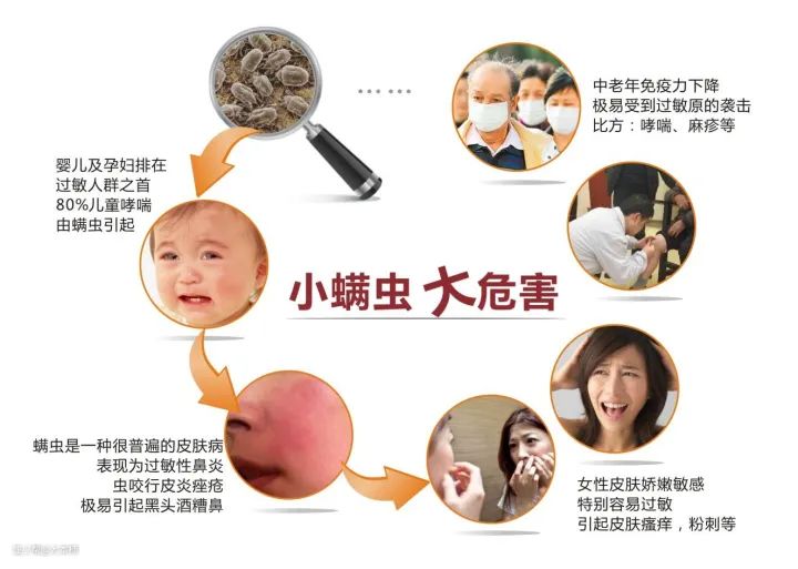 我们都知道,螨虫很小,小至只有0.1~0.5mm,然而却是压在宝妈们心头的一块大石,它对宝宝的健康会造成多方面的影响。