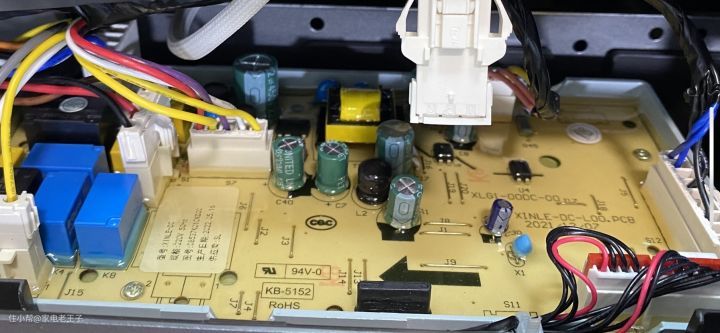 下面来看一下烘干机的电控板,电控板型号为XINLE-DC,生产于2022.05.16,电脑板经过封胶处理,供应商为SL。
