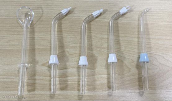 (从左到右依次是:舌苔喷嘴、牙周袋喷嘴、正畸喷嘴、冲刷一体喷嘴、标准喷嘴)