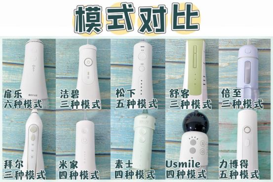 通过这几个维度:清洁力、护牙力、喷嘴种类、模式对比、水压范围、水流粗细、售后政策来进行横向测评。