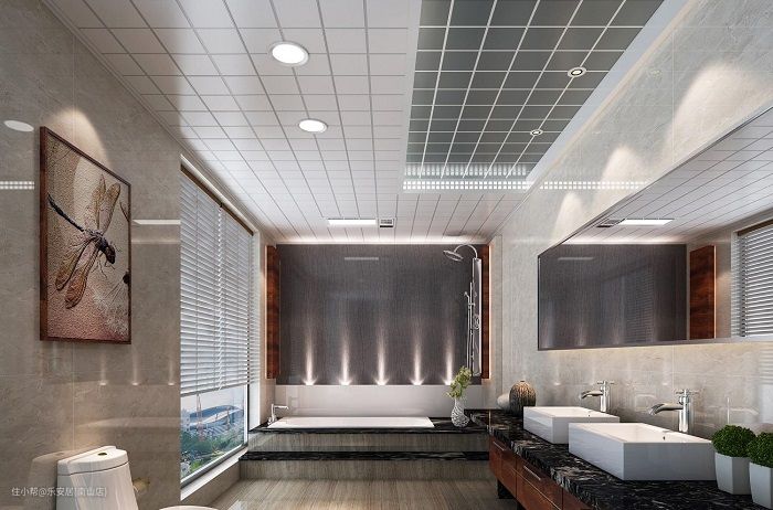 使用寿命的差别主要在电器上,三角龙骨、主龙骨、吊杆和吊件等辅助材料不能忽视,留意照明、取暖、换气位置设计的合理美观度。
