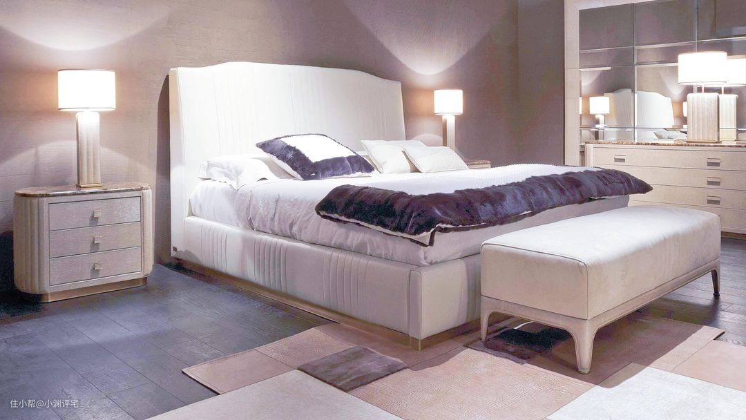 其次是床头的软包:如果习惯靠在床头上休息,可以选软包床头。但是别包太多,中间有点海绵和皮(布)就够了。软包范围越大,清洁难度就越高。