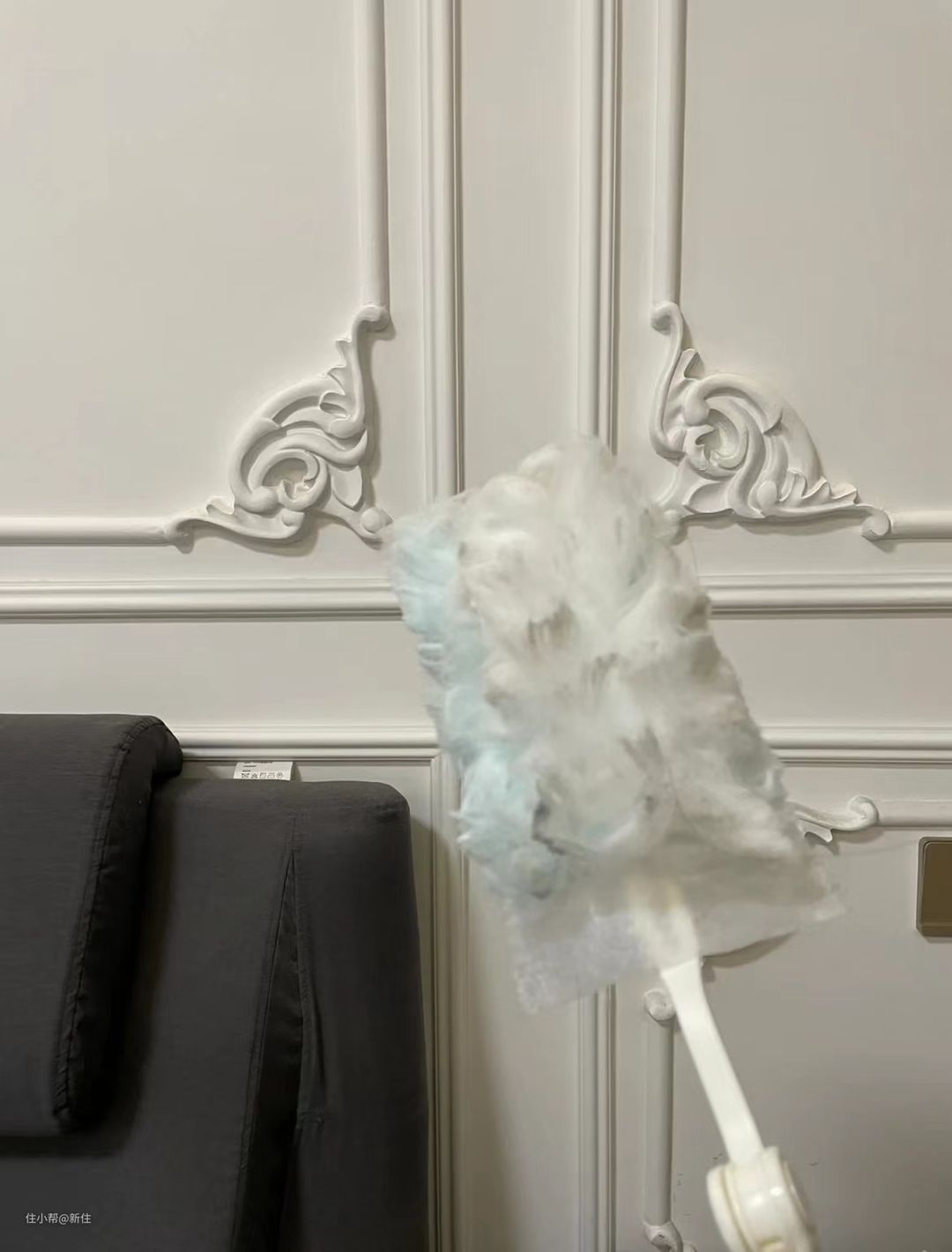 不光是石膏线,踢脚线、吊顶的浮灰,顺便用它也扫扫,方便得很。