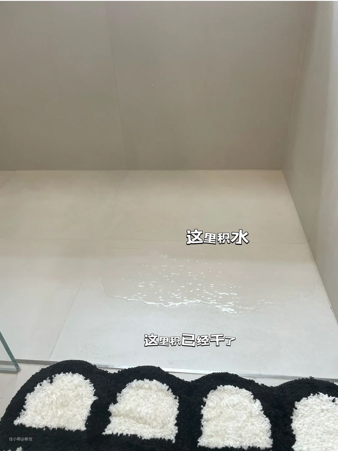 但不知什么原因,现在的边角处总积水,经常面临的境遇就是,一边干了,一边还有2-3mm的水得靠人工去处理。