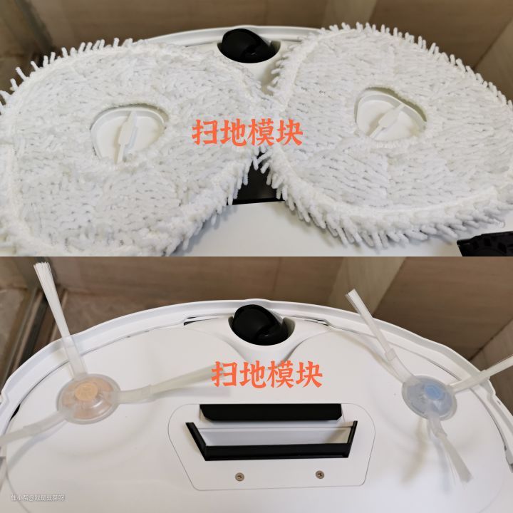 (一) 按照说明书安装好扫地模块、拖地模块、安装尘盒、安装清/污手箱等。(PS: 扫地模块或拖地模块不能同时使用,云鲸在研发的时候其实有考虑过扫拖同时进行,但这样干湿没有分离开,容易把地越拖越脏:脏了的边刷可能沾到湿润的地板留下污渍,或返回基站的路上脏拖布二次污染地板。所以我们决定模拟人工扫拖的逻辑,扫拖分开,配以两套算法,为用户实现真正干净的清洁体验。)