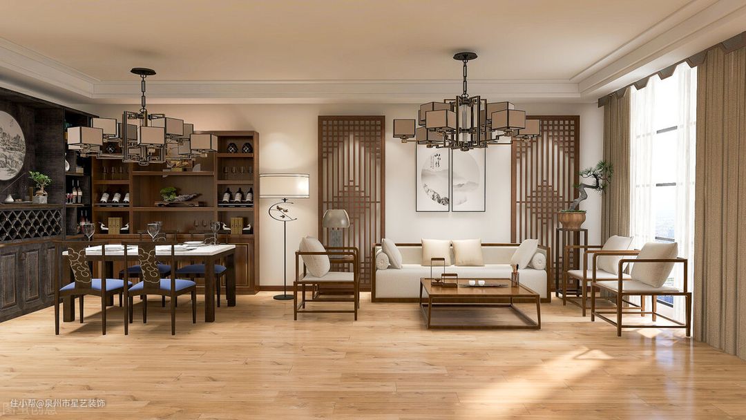 3.新中式风格:新中式风格一听名字我们就可以想到跟中华元素有关的,只要想到这点就是对的,在装修新中式风格的时候我们更多的是考虑颜色的搭配,以及布局格调,红木自然是少不了的,给大家附上一张图做为参考。