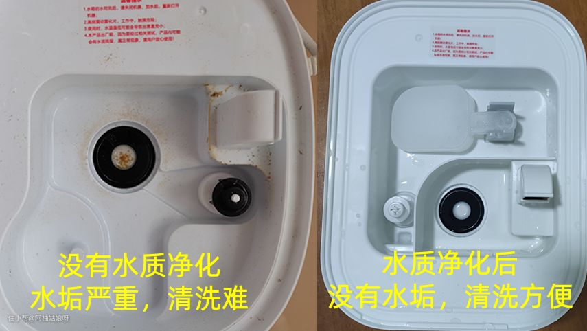 水质净化主要解决三方面的问题,其一是去除水中的余氯和钙镁离子,避免余氯和结晶粉末跟随水雾挥发到空气中被人体吸入后引发不适。其二是避免产生水垢,方便后期清洁。其三是直接使用自来水,使用起来更加便捷。