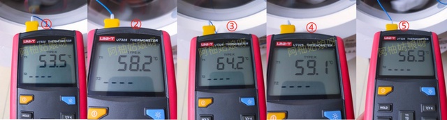 可以看到木卫初期升温速度很快,用不了几秒钟温度到升到了53.6度,快速升温可以缩短烘干时间。在烘干中期最高温度达到64.2度,并且一直温度一直不超过65度。在烘干后期,烘干温度随着衣物越来越干也降了下来,最后在56.9度停止运转,烘干结束。