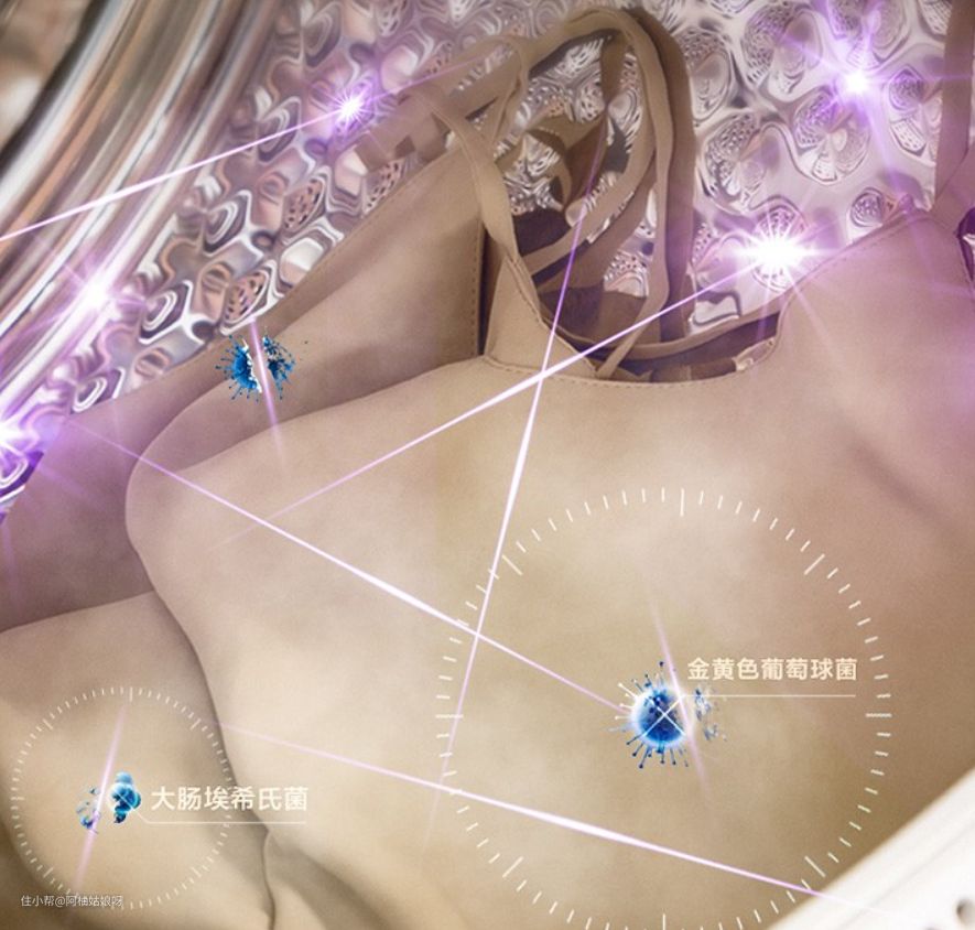 - UV紫外线除菌:太阳光紫外线中某段波长的光线可以起到杀灭细菌的效果,而UV紫外线除菌就是模拟太阳光线起到杀菌效果。这种技术的优点是除菌效果明显,安全无毒无害,而且对衣物不会产生损伤。