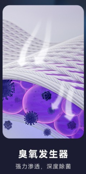 - 臭氧除菌:机器内部设置柚臭氧发生器,可以在烘干时制造出臭氧分子。臭氧具备氧化性,可以分解细菌内部的葡萄糖酶,令细菌无法合成所需的能量而灭活。臭氧除菌应用在烘干机上效果要稍差一点。
