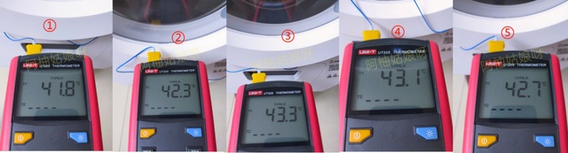 我又测试了在丝绸模式下的温度,可以看到从一开始到结束温度始终保持在40-45度之间,这个温度下基本绝大部分衣物都不会损坏,也说明了木卫的确起到护衣效果。