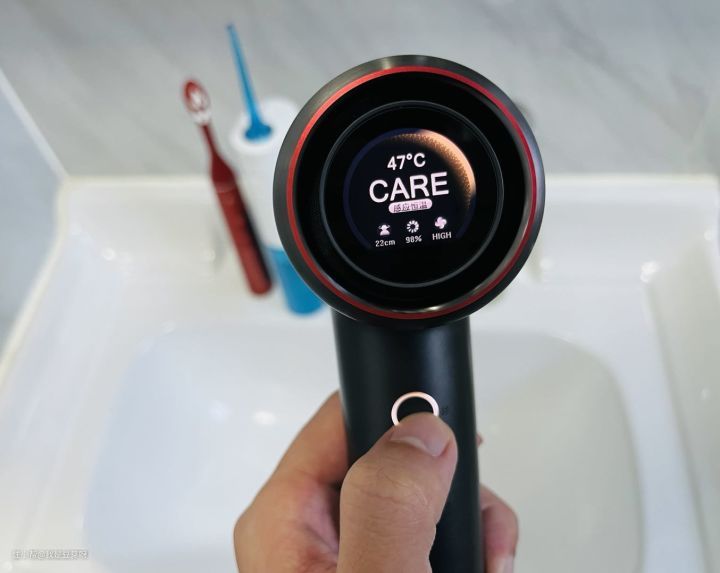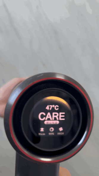 和很多高端家电一样,Airfly也搭载了一块智能屏显,大家可以通过智能屏显看到鱼子酱精华环余量监测及更换提醒,还可以展示风温、感应距离、定期清洁提醒。让我们看得见护发过程。