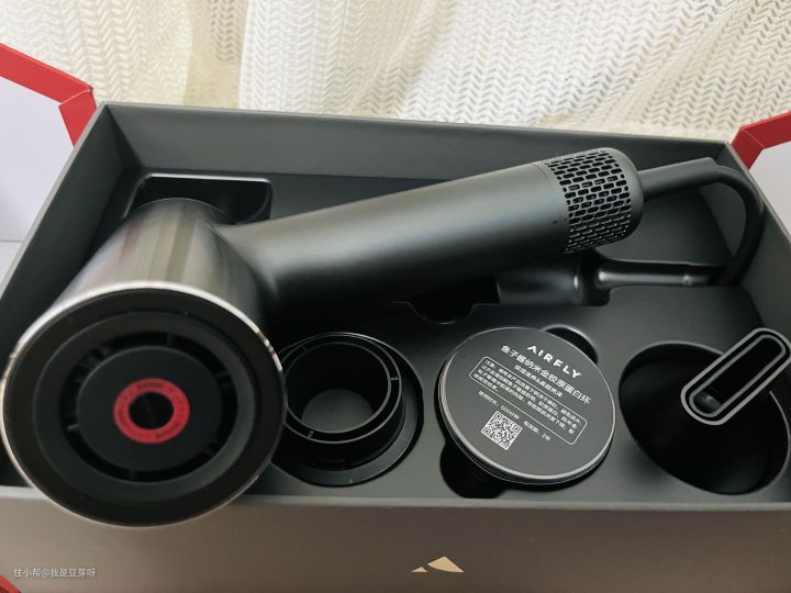 俗话说,头发是人的第二张脸,可见头发的重要性,所以我们要好好养护它。护好发有两大作用: 一、保护头皮 头皮作为头发提供营养的加油站,只有护发做到位了,才能保证头皮处于一个健康的状态给予头发养分。 二、增强美感 有的人追求头发的柔顺和健康,有的人追求头发黝黑发亮。这都是为了满足自己对美的追求,头发对整体的美感也是至关重要的。 如果你用便宜的传统的吹风机护发,那很有可能是智商税。因为便宜的传统的吹风机一般都存在吹风效率低下、风力不足的情况,想要弄干头发,只能靠发热片把水分烤干,对头发的损伤很严重,那护发就无从谈起了。吹风机可以通过很多种方式护发,比如负离子电吹风主要是内装了一个负离子发生器和一个半导体制冷装置,产生带负电的离子微粒和水蒸气粒子,中和头发中常有的正电荷,从而抚平乱发,使其贴服顺滑,还可以消除静电。除此之外,还有通过智能恒温或智能恒温+负离子的方式护发。所以用便宜的传统的吹风机护发是智商税。 其实越来越多的广大女性,特别是25-35岁之间的女性,都充分意识到护发的重要性,但市面上在护发这块做的很好的吹风机特别少。前段时间听一个关系很好的女性朋友说“AIRFLY鱼子酱体感吹风机在护发这块做的很不错的啊。”我一个专注于个人护理电子产品的博主一听就马上来了兴趣,第一时间买了下来,看是不是真的不错。 接下来我评价评价AIRFLY鱼子酱体感吹风机。 首先,先聊聊AIRFLY这个品牌。据我了解,AIRFLY是主打专业奢护的品牌。以成分养护为产品设计理念,打造精准快速、简单高效、多效合一的专业美容护理工具,并创新许多领先行业的专利技术,如双风道设计、柔风嘴设计等。