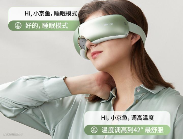 倍轻松 iSeeJ plus 眼部按摩器采用智能气压,模拟人手揉捏按摩,定点揉推,相当于做智能眼保健操。4大+6小升级叠加气囊,提升按摩精准度,气压波形按摩眼周力度更均匀有劲。42~50℃恒温热敷,10秒感知,精准温控更安全,还可以通过语音调节。AI互动可以进行语音交互,聊天、听音乐张张嘴就行。亲肤蛋白皮面料,透气贴合、均匀受热。1150mAh锂电池,每天使用10分钟,续航长达7天。300g机身能够进行180°折叠,方便携带,不压头。