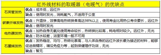2020年开始迅速走红网络的石墨烯取暖器,其加热原理亦是利用远红外辐射加热,我们先来简单分析主要的几种红外线取暖材料的优缺点。