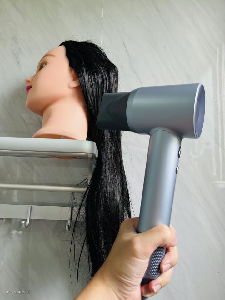 干燥速度测试方法,将每款吹风机开到最大档,对着距离 5 cm处的长度为50cm的长头发吹干。