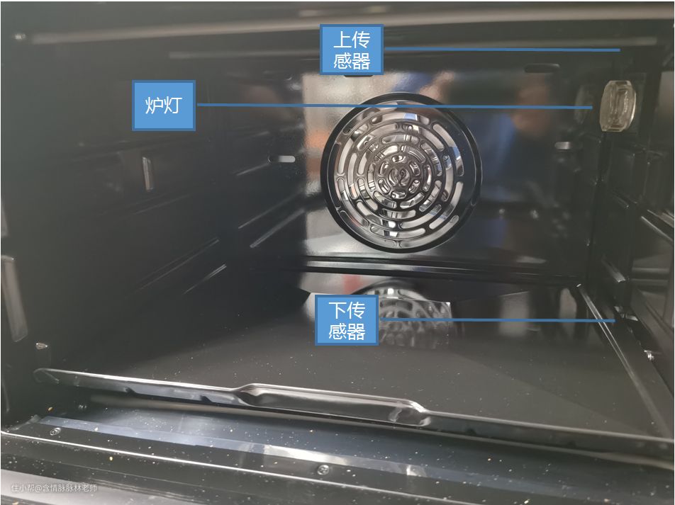 S1除了双层玻璃隔热门,顶部还增加了多层隔热防护。三层金属物理隔热+15mm加厚隔热棉,烤箱正在工作时,顶部表面温度也不会超过60度,对比大白鲸是一个很棒的升级。