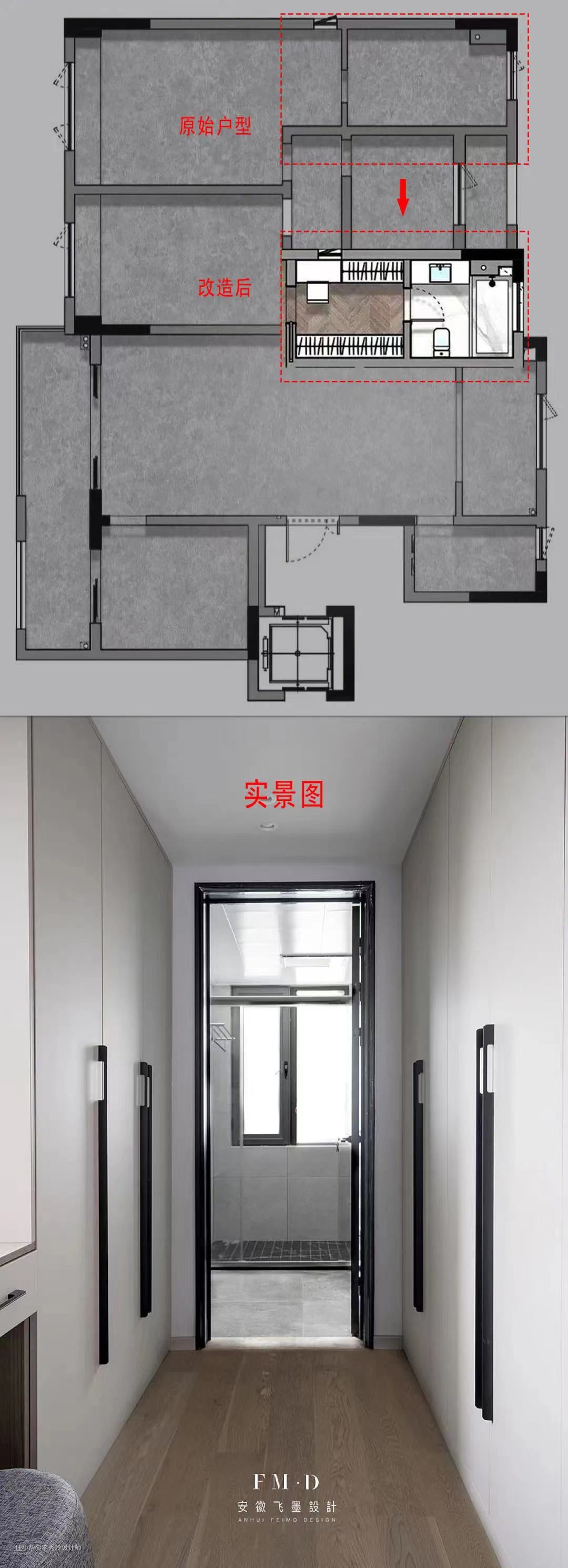 5.考虑到实际需求,也可以通过缩减主卫的面积实现半改,增设衣帽间;