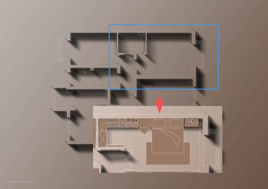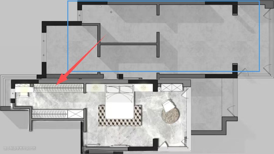 6.若主卫原有面积不够,也可以借用过道、主卧面积,实现衣帽间自由;