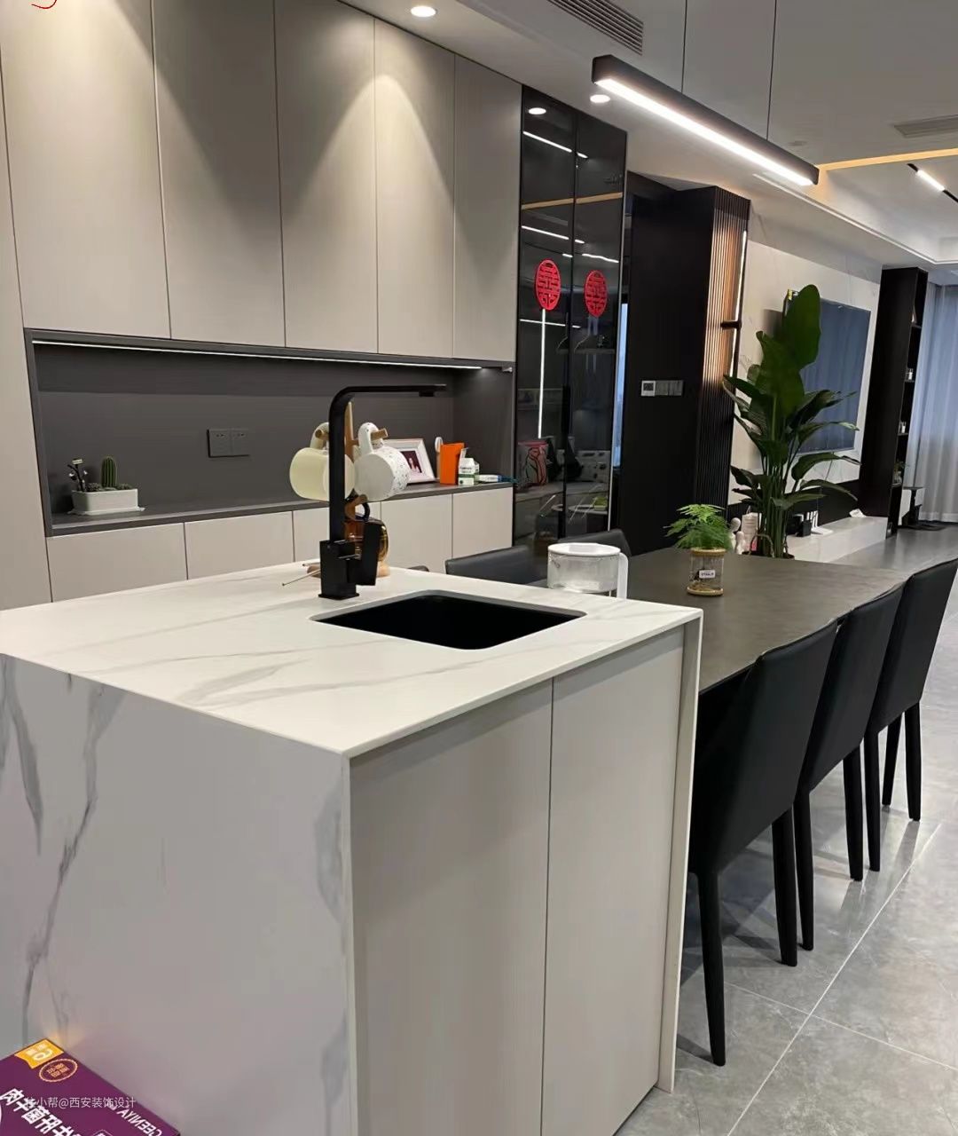 小编评价:装修时,尽量给予“岛”空间比较宽敞,让一家人坐在岛前准备晚餐或用餐,让家庭氛围更加和谐,增加与家人的沟通。