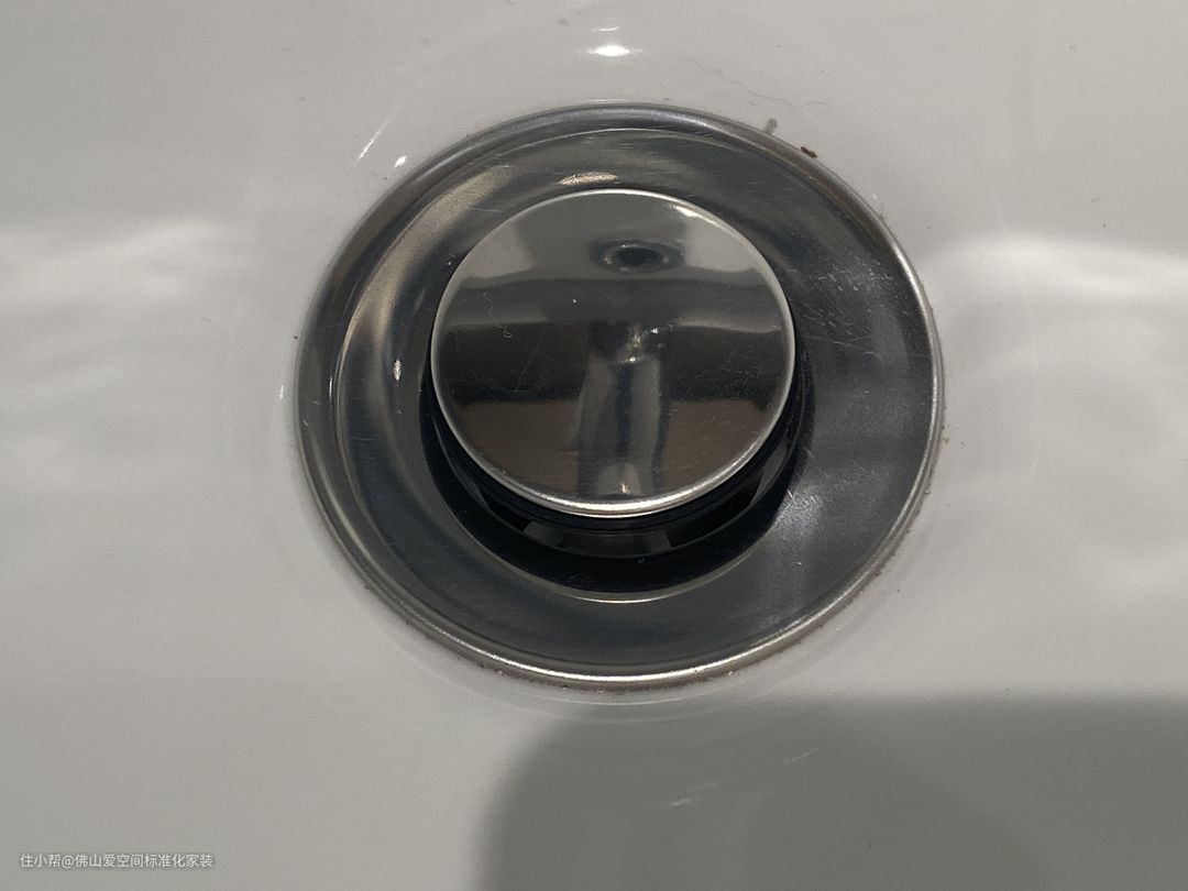 4.洗漱池的下水口有按压式的塞子,开关方便又耐用,陶瓷材质的更耐腐蚀,毕竟水都是有酸碱度的,久了会有一点腐蚀情况;普通的塞子泡水久了,那个胶圈会被泡发胀,导致盖不紧,会出现漏水现象,小爱家就是出现了这个情况。