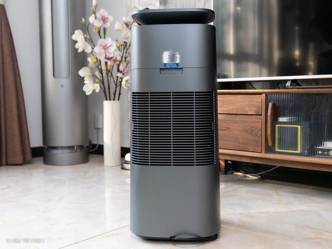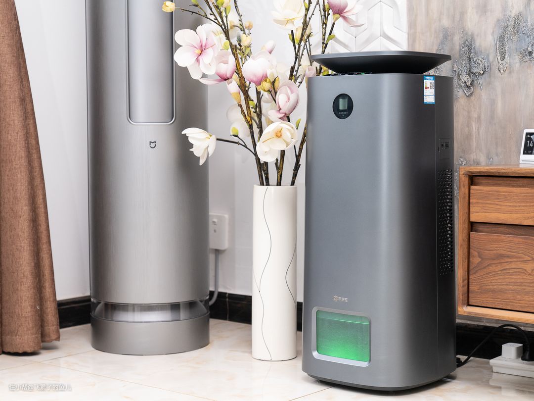 这款机器整体采用金属灰配色,泛着金属光泽,质感不错,看起来很有高级感,放在颜值完全可以hold住,而且跟我家的米家新风空调蛮搭的。
